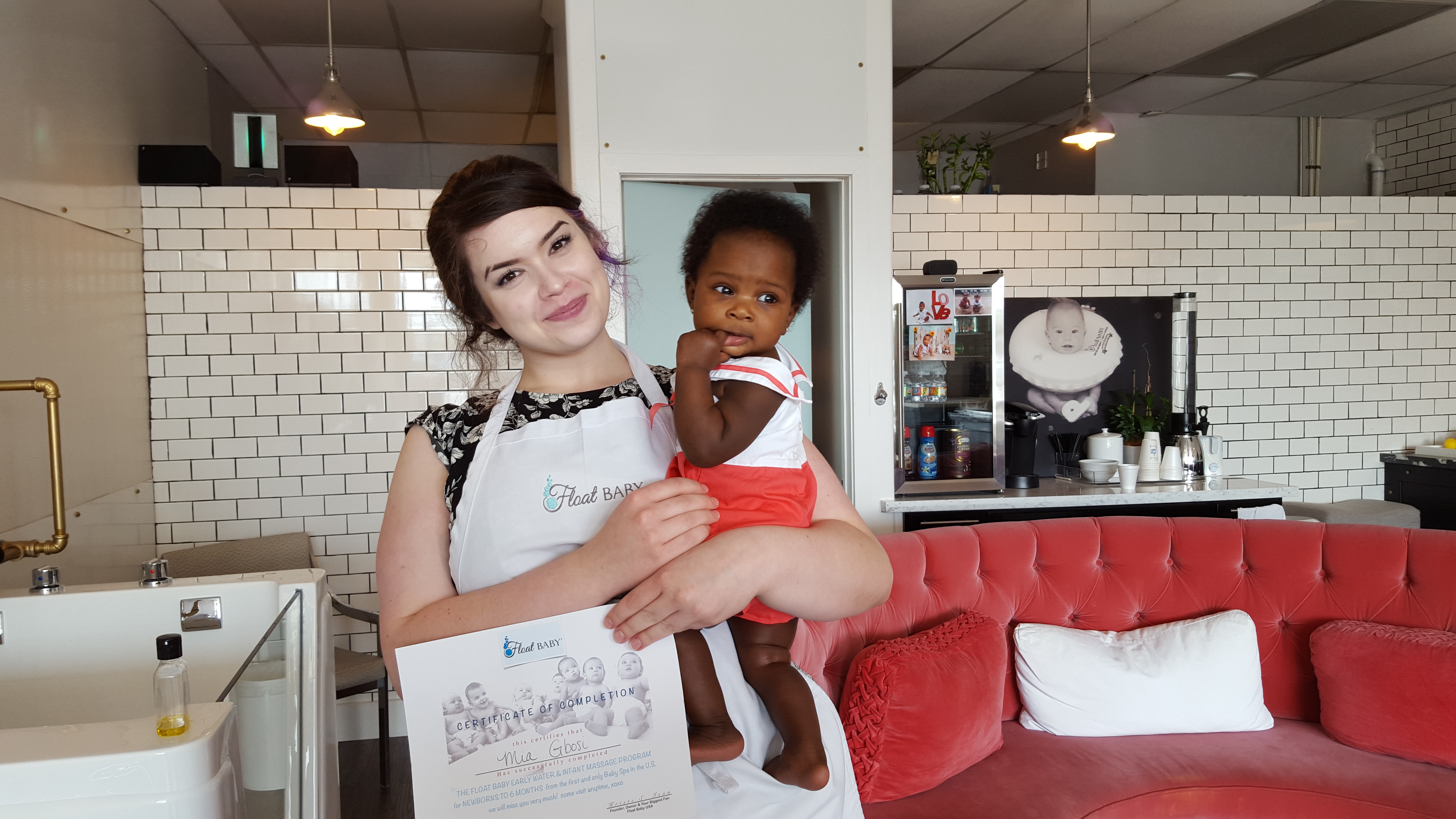 Sam is a professional nanny with 10 years of experience caring for children of all ages and needs.  She is infant and child CPR/First Aid certified, has extensive experience as a traveling nanny and working with special needs children.  She has a passion for working with kids and plans to pursue further specialized education to continue helping children and their families.  Some of her other interests include animals, playing piano, making art, traveling, learning new languages, and floating babies!  Our Float Babies love how Sam bounces them in the water!